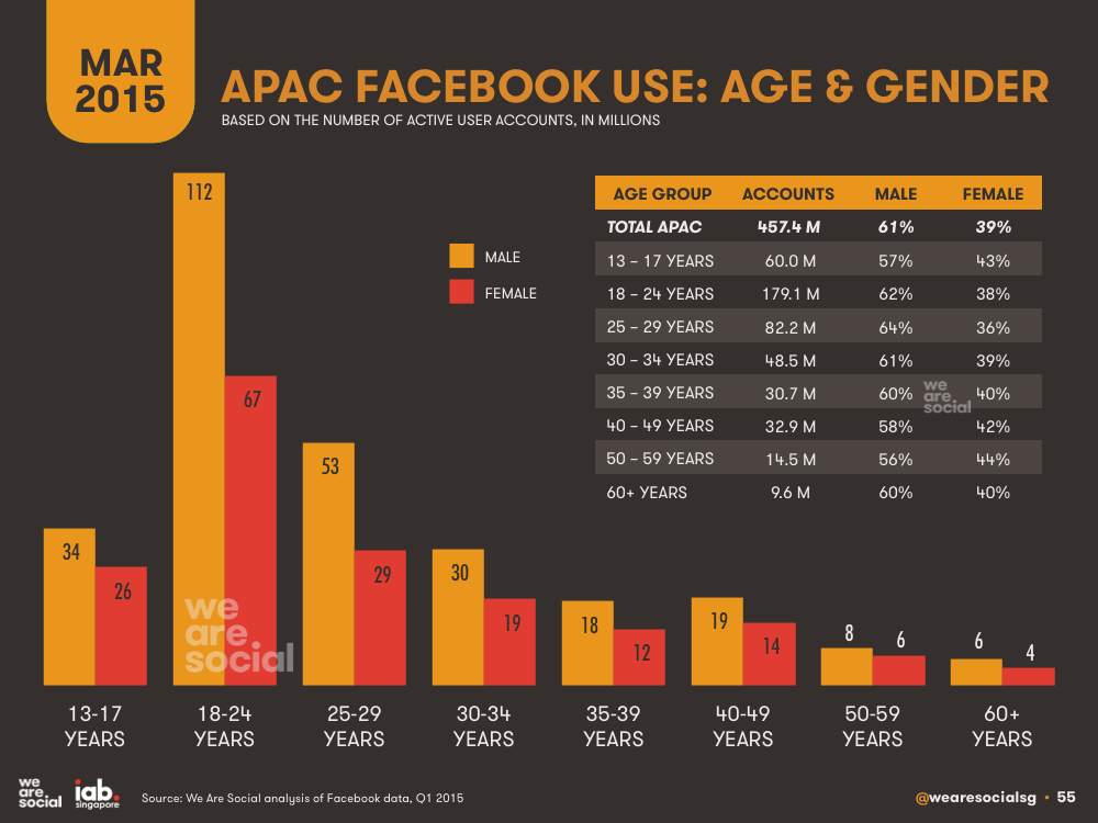 Voici les utilisateurs de Facebook en Asie, et leurs profils (étude de We Are Social) :